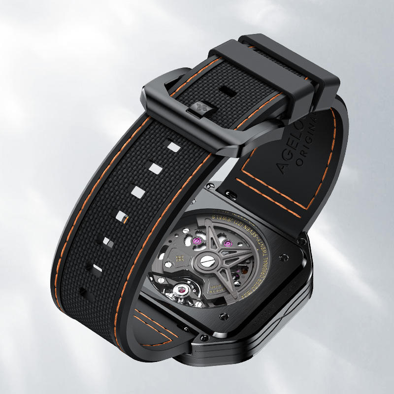 Agelocer Volcano Watch Innovative Volcano Theme Men's Flame Orange Automatic Mechanical Watch