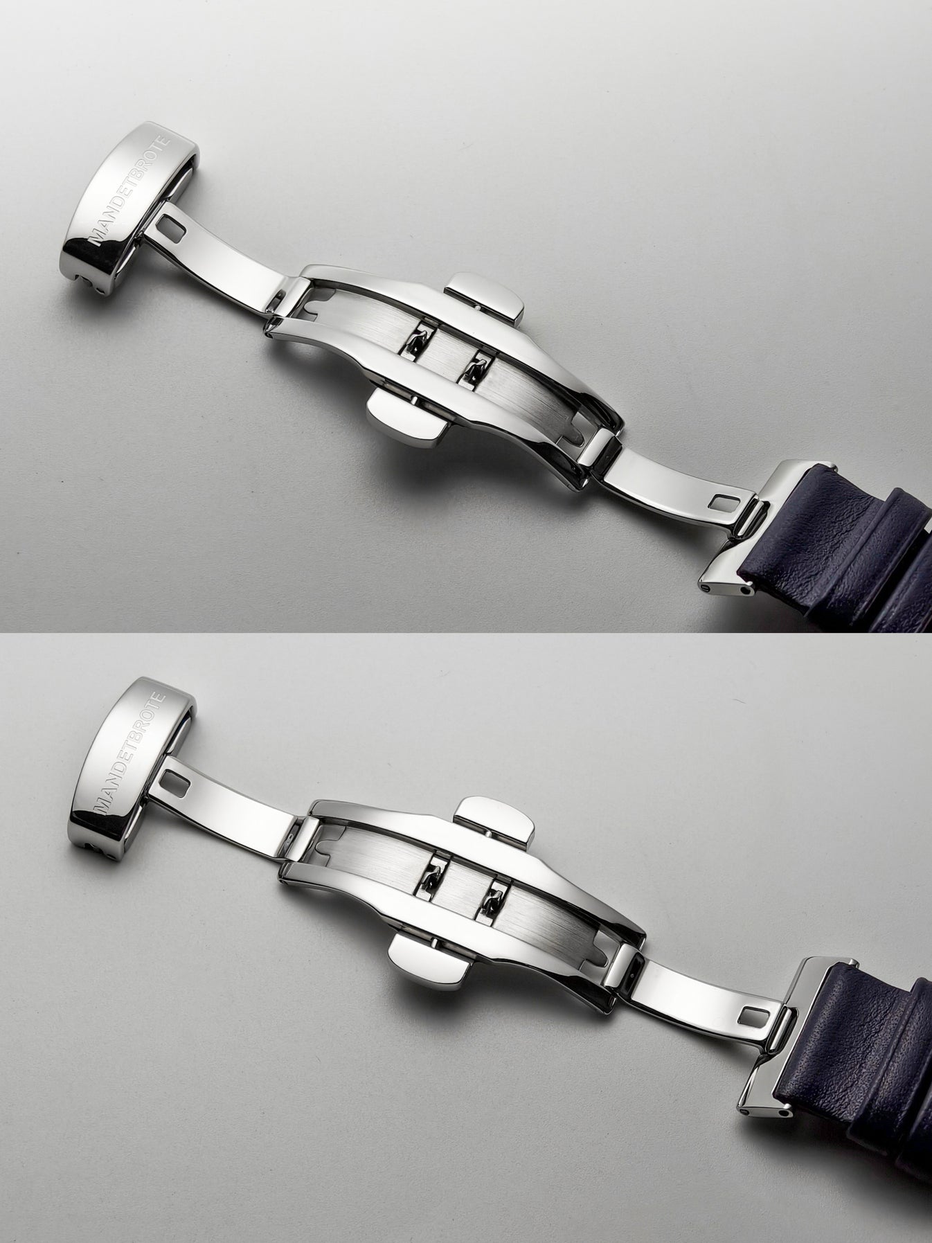 - 20-18mm leather strap with Stainless steel butterfly buckle