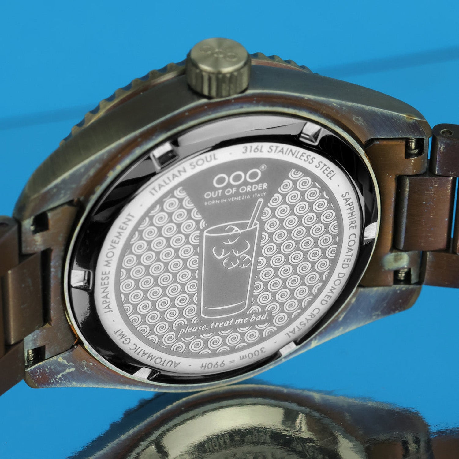 - BRACELET: Solid 316L Stainless Steel with OOO® exclusive aging process with OOO logo on the bracelet clasp;