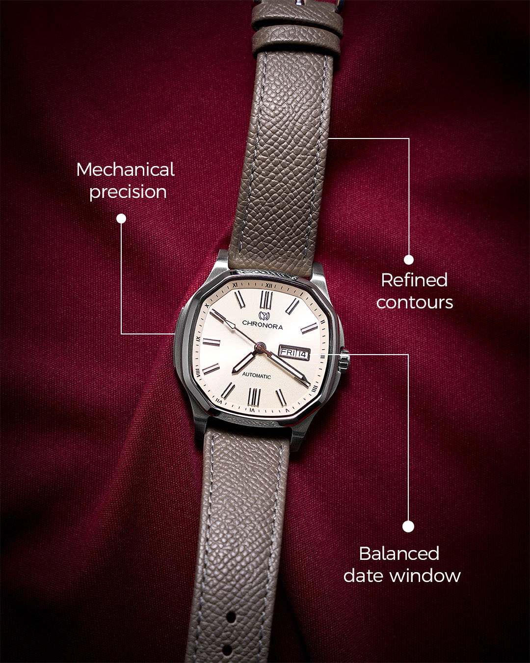 This movement reflects Chronora’s philosophy: solid performance, longevity, and accessible luxury.