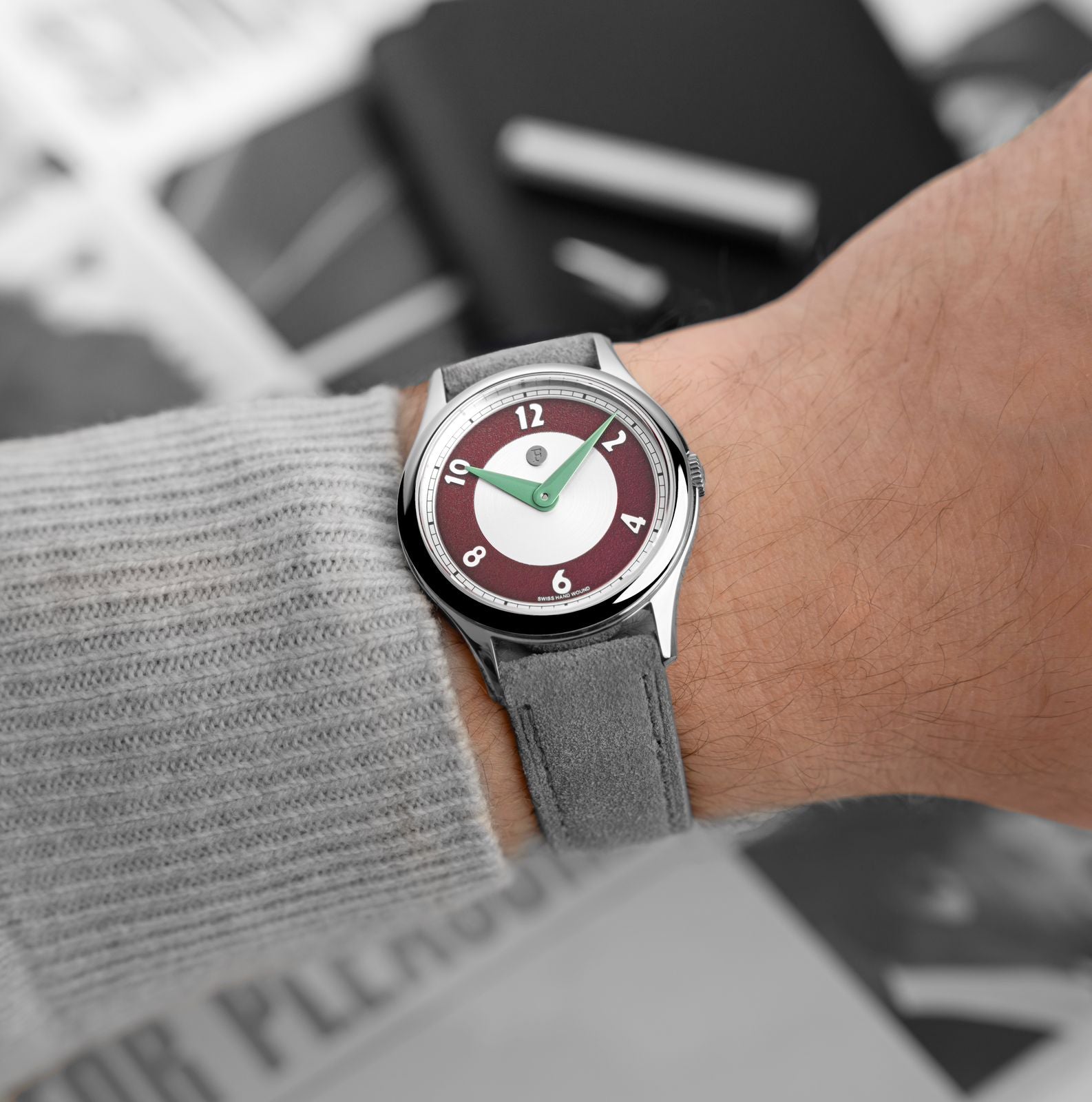 Swiss Sellita SW210 hand-wound movement for timeless mechanical precision.