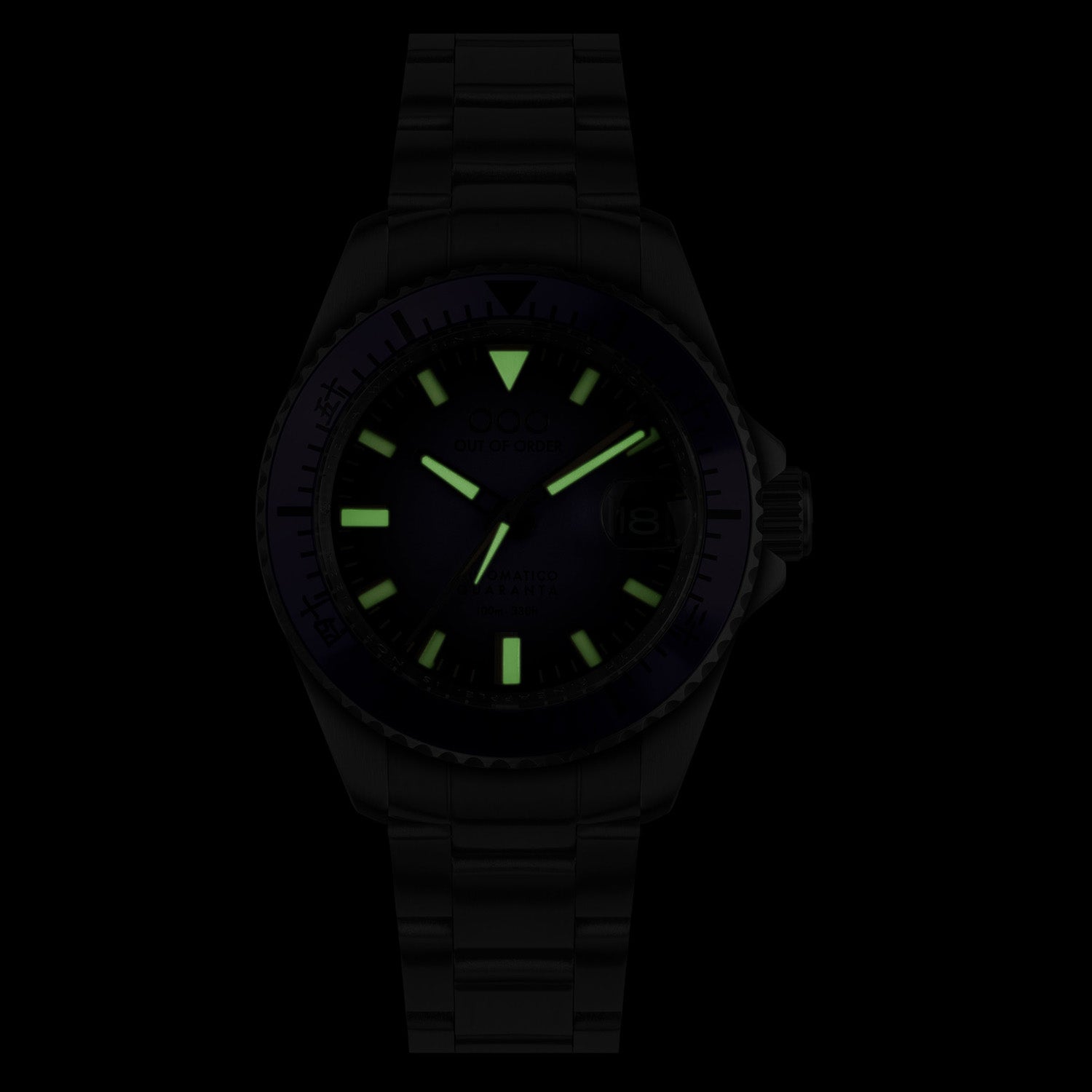 - BEZEL: 316L stainless steel, uni-directional, shock-resistant with aluminium insert with printed numbers;