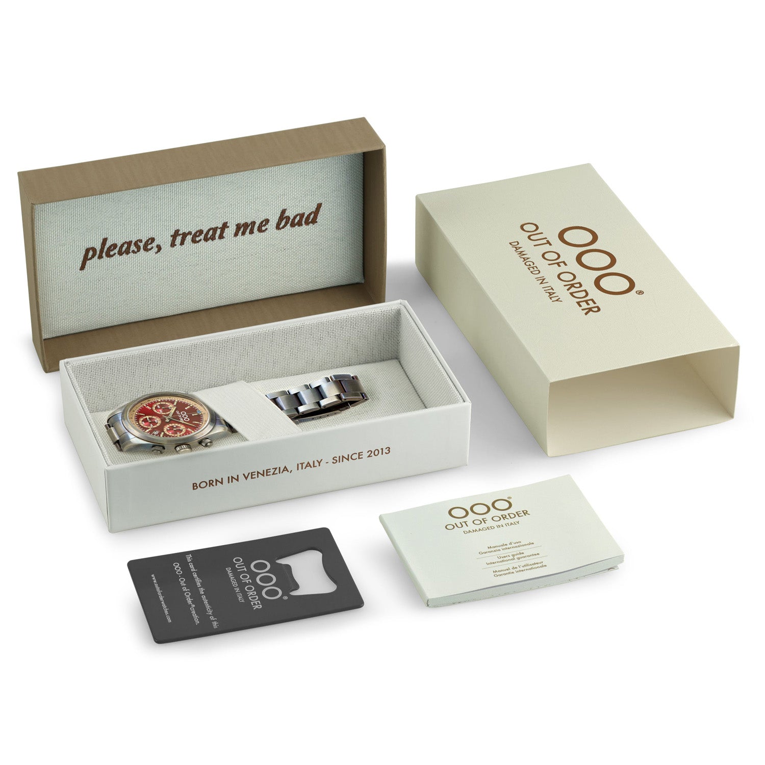 - Clasp: Deployant with safety lock and micro-adjustments with "OOO" logo on the clasp