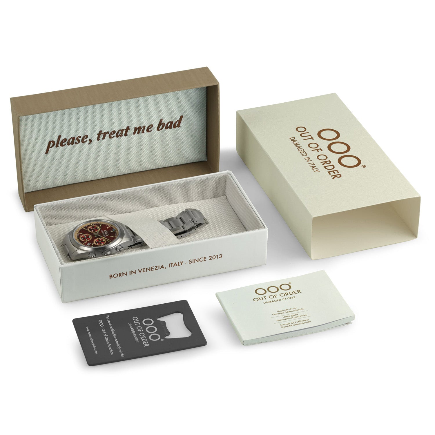 - Clasp: Deployant with safety lock and micro-adjustments with "OOO" logo on the clasp