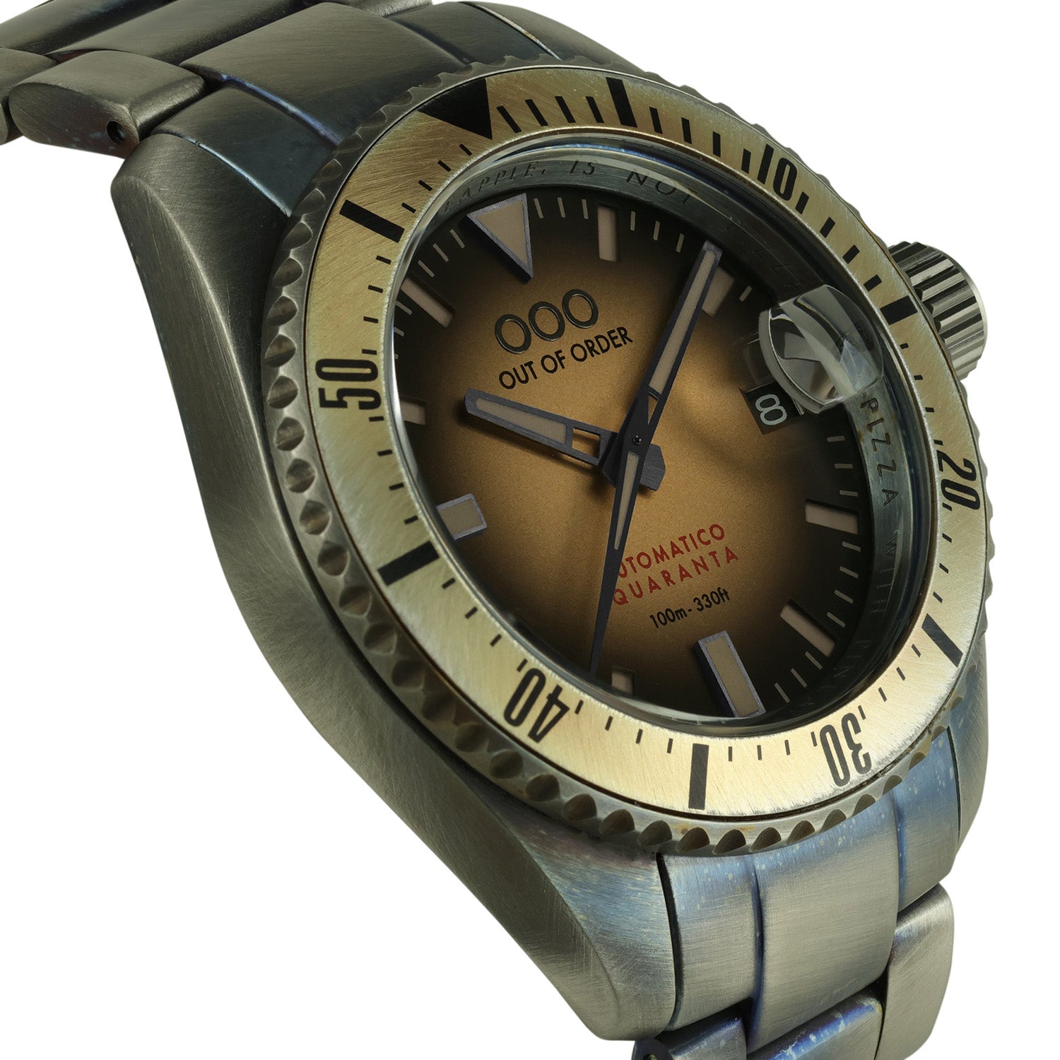 - CASE: Stainless Steel solid 316L with “OOO® exclusive aging process” with aluminum OOO® hand-brushed bi-directional turning bezel;
