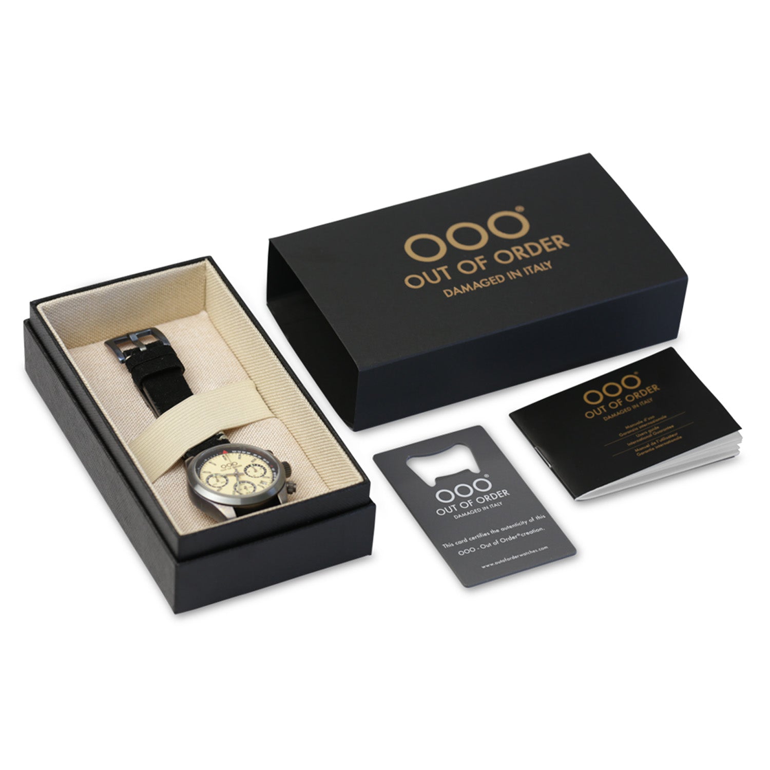 CREAM SPORTY CRONOGRAFO - BLACK LEATHER STRAP
